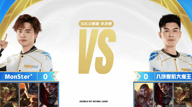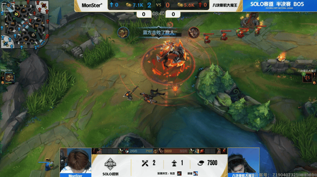 第三局,八块腹肌大魔王拿出了鳄鱼,MonSter°则是选择了兰博。而带着不灭天赋的MonSter°并不怕鳄鱼消耗,虽然经济始终处于落后,但比赛时间来到5分多钟的时候,等级起来的兰博已经与鳄鱼有了一战之力。更是通过一波草丛的埋伏,拿下了贪兵线的鳄鱼的“一血”。在获得“一血”后,MonSter°的经济已处于领先,而随着等级越来越高,鳄鱼已经非常吃力。最后,MonSter°直接是顶着防御塔,再次“击杀”掉了八块腹肌大魔王的鳄鱼,赢下比赛的同时,成功晋级到了决赛。