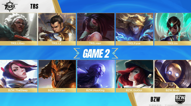 这局比赛可以算得上是上一局比赛的缩影,因为从节奏把握以及团战处理上来看,明显还是TRS更胜一筹。在这一场比赛的6分多钟的时候,双方在小龙处爆发了第一波5V5团战,这波团战,TRS直接是打出了一波完美的0换4团战。在这波团战过后,TRS直接占据了局面的绝对主动。后续不管是野区资源的争夺还是团战,BZW丝毫没有任何办法。不过有趣的是,在比赛时间12分钟左右,TRS在中路终于还是给到了机会,而BZW也因此终于拿到了“人头”,并且还是三个。不过,这波团战也并不能够改变场上的局面,因为经济差距实在太过于巨大。最终,依旧还是TRS顺利拿下了比赛,成功晋级到了决赛。