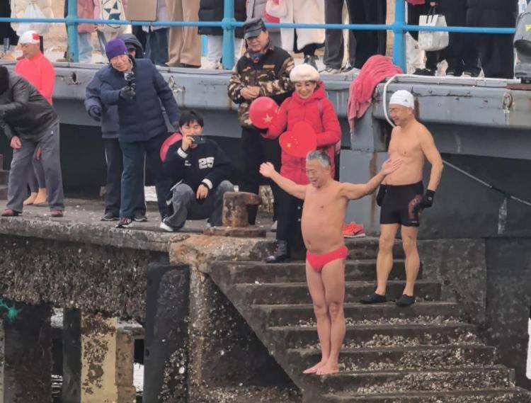 气象信息显示,1月1日的气温已经在0摄氏度以下,不少市民游客都穿上了厚厚的棉衣和羽绒服,但几位“巧克力大爷”还能在严寒当中穿着泳衣坚持冬泳,还有不少粉丝在旁边为他们加油助威。据栈桥冬泳协会秘书长时效杰介绍,他们都是土生土长的青岛人,从小都喜欢洗海澡,坚持冬泳已经三四十年了,而新年第一跳这个习惯已经坚持了十多年,新年到了,生活也要有些仪式感,冬泳在青岛有着深厚的群众基础,这项连续举办的活动早已成为青岛冬季全民健身的品牌名片。如今,在青岛,冬泳已不只是一项运动,更成为一种文化,一种精神象征。不过天气寒冷,也要根据自己的身体情况量力而行。